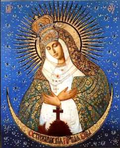 She is the Ostrobramskaya (Vilenskaya) Mother of God. The original is now in Vilna – with the Catholics, in fact! 🙂
