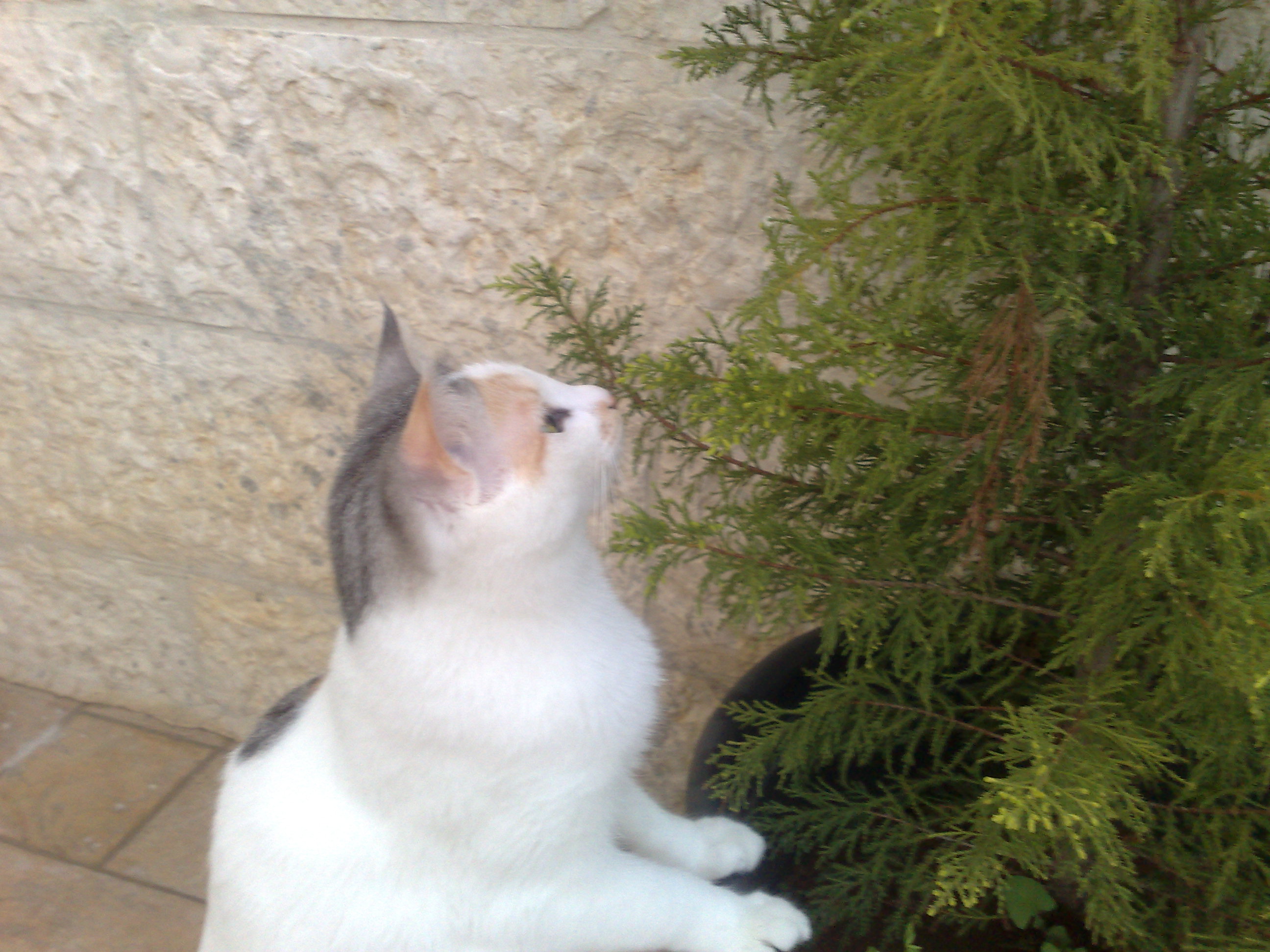 And mostly the time for Natalia to drink coffee in the yard, whilst wearing a set of out-of-season “ho ho ho” pajamas in pink and white, and watching the cats as they watch the bugs (no picture is forthcoming).