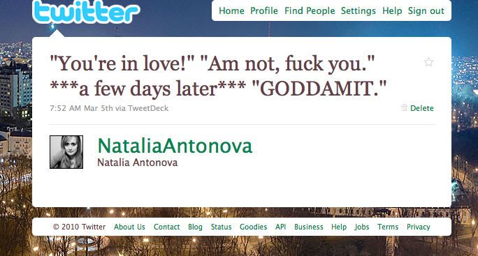 Humility. Let me show you it. Posted byNatalia AntonovaMarch 6, 2010Posted inBad News, Friends & NeighboursTags:love Why is it that my friends are always right about everything? Why? Share this: Click to share on Facebook (Opens in new window) Facebook Click to share on X (Opens in new window) X Click to share on Reddit (Opens in new window) Reddit Like Loading... Related