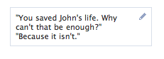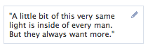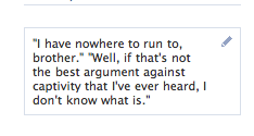 For some reason, I started this tradition of updating the seemingly pointless profile box below my Facebook picture with my favourite quote from the latest LOST episode I had watched this season, and then taking a screenshot and filing it away in a separate folder. I figured out halfway through that this was some sort of complex mourning ritual that I was engaged in. Oh, and that I am one of those people who spends whatever time she has on her hands in increasingly peculiar ways.