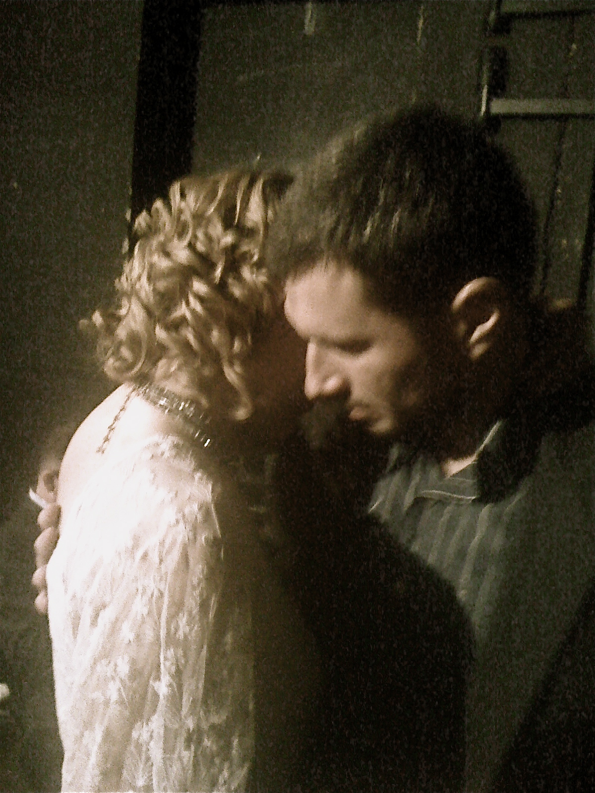 In this photo, we’re actually dancing to Led Zeppelin. We both figured that this would be slightly cooler than, say, Celine Dion.
