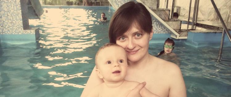 At the pool, you hand the baby to the husband (who, being a stereotypical husband, loves playtime), and reflect (haw haw) by the water for a bit.