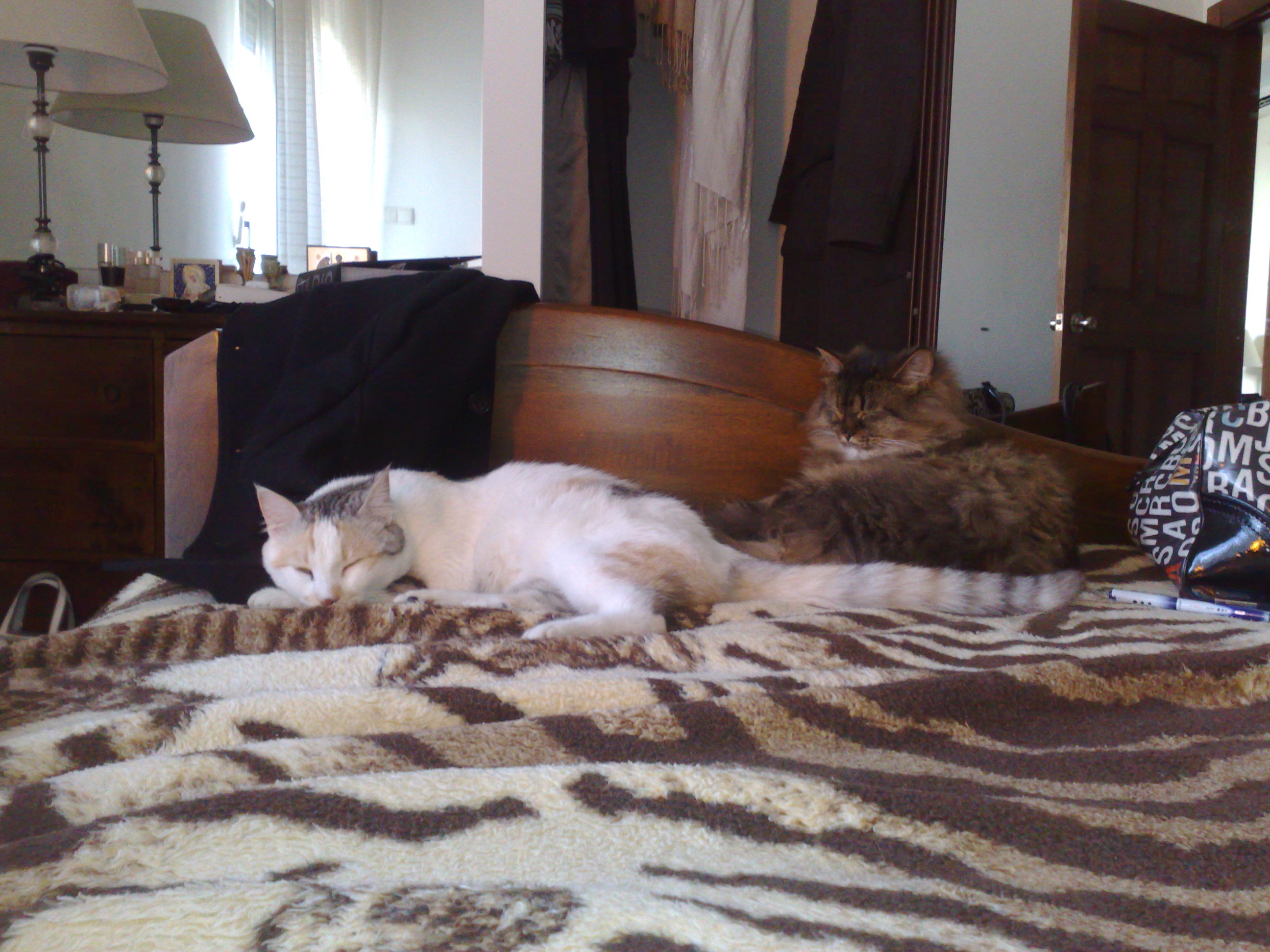 Of course, the timing of Renee’s post is especially ironic for me – since we took in two fat kittehs on the day that she published it. We have named them Fanty & Mingo and really hope we get to keep them (there is some weirdness with their original owners at the moment, since we got them from a person who, the original owners had assumed, would keep them forever). Here they are, in all of their lazy, imperious glory: